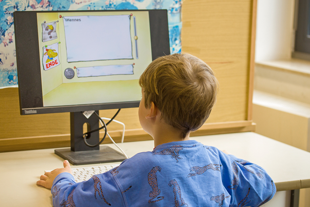 Die Klassenräume in unserer Schule zeichnen sich durch einheitliche Elemente und Einrichtungsmerkmale aus, die es den SuS erleichtert, sich in jedem Klassenraum zurechtzufinden und bekannten Strukturen zu begegnen. So gibt es beispielsweise in jedem Klassenraum einen Sitz- bzw. Bänkekreis. Dieser ist mittlerweile zu einem zentralen Element im Unterrichtsalltag geworden. Hier finden nicht nur der tägliche Morgenkreis, Unterrichtsgespräche sowie Präsentationen statt, er wird auch immer wieder von den Kindern als Ort des Austauschs oder als Arbeitsplatz genutzt.